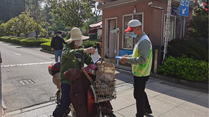 4月15日上午,院保卫处组织志愿者到澄湖春天小区开展2020年全民国家安全教育日进社区活动。活动现场,志愿者们佩戴好口罩,保持1米以上的安全距离,向过往居民发放了国家安全教育宣传单,告知宣传单已经过消毒,并宣讲公共卫生安全、生物安全等国家安全知识。下午,万象城官网在知行楼大厅滚动播放总体国家安全观宣传片,向过往行政坐班人员宣传总体国家安全观。
