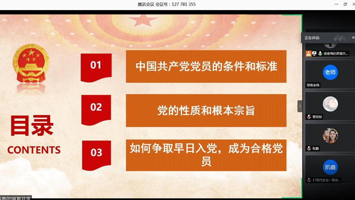近日,园林工程系党支部书记利用腾讯会议为入党积极分子上了一堂专题党课。支部30余名入党积极分子参加了此次党课。