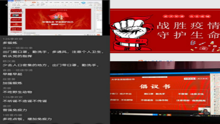课堂上还展示了由身边同学拍摄制作的“抗疫”微视频,有的讲述在家科学防疫的有效方法,有的讲述自己在社区、村组志愿抗疫的行动,有的讲述如何有效调试疫情影响下的紧张情绪,有的发起了“抗疫”倡议书,有的开展了“疫情过后最想做的事”的小调查,有的深情诵读表达对党和国家的热爱、对战胜疫情的信心、对最美逆行者的致敬……隔着屏幕,看到久未见面的同学,一张张熟悉的脸孔,正在上课的同学们纷纷喊出了内心的渴望:希望疫情赶紧过去,我想回学校了,我想同学了……
