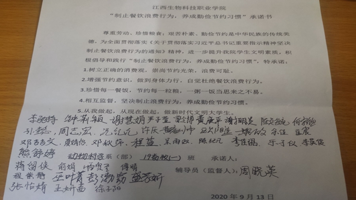 为贯彻落实习近平总书记关于坚决制止餐饮浪费行为切实培养节约习惯的重要指示精神,大力弘扬中华民族勤俭节约传统美德,培养大学生树立勤俭节约意识,9月13日晚,动物科学系组织召开了以“厉行节约、拒绝浪费”为主题的班会。