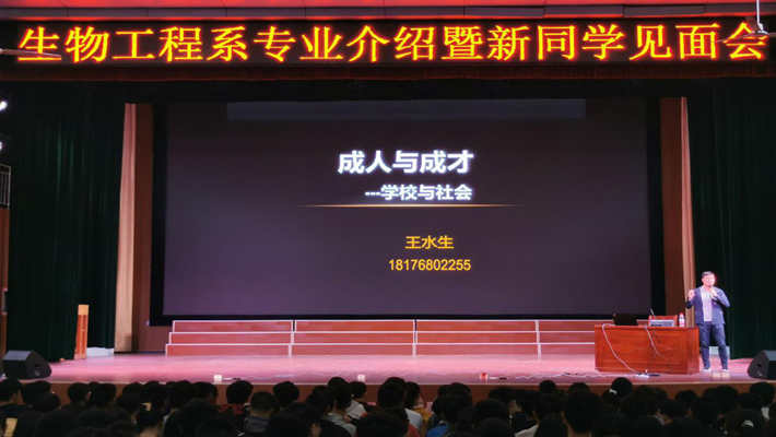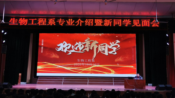 10月16日下午,生物工程系组织本系2020级全体新生在学院大礼堂召开了专业介绍暨新同学见面会。出席会议的人员有生工系领导、优秀毕业生代表、部分专任教师、新生辅导员及全体新同学。