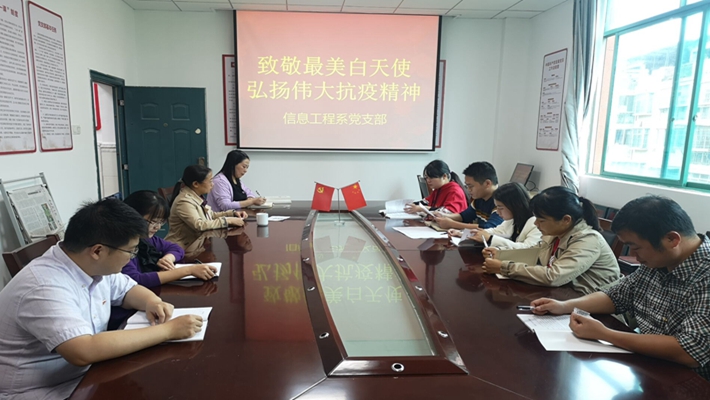 9月18日上午,信息工程系党支部全体党员在党员活动室集中学习了9月8日全国抗击新冠肺炎疫情表彰大会上习近平总书记关于“致敬最美白天使,弘扬伟大抗疫精神”的重要讲话。