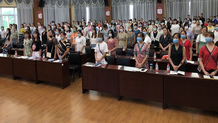 7月18日,万象城官网在知行楼二楼隆重举行2019级基础部扩招学员开学典礼,200余名学员参加了此次开学典礼,学院党委委员、副院长詹绍成、教务处、学工处、总务处负责人以及基础部幼管专业教师参加了此次开学典礼。典礼由基础部负责人主持。