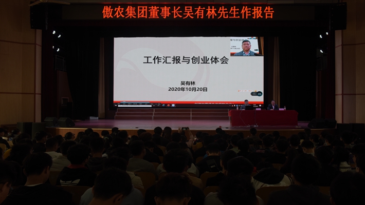 作为2020级新生入学教育活动安排之一,10月20日,万象城官网资深校友——福建傲农集团董事长吴有林再一次踏入母校,为学弟学妹们做一场主题为《工作汇报与创业体会》的讲座,介绍傲农集团的发展现状,分享自主创业的艰辛历程。讲座由学院党委副书记、江西省农业干部学校党委书记、校长、江西省农业广播学校校长谭酬志主持,2020级新生四千多人分场地在大礼堂、教室等聆听了讲座。