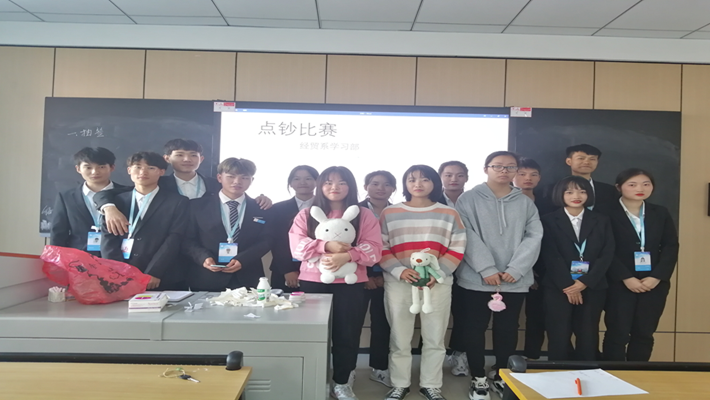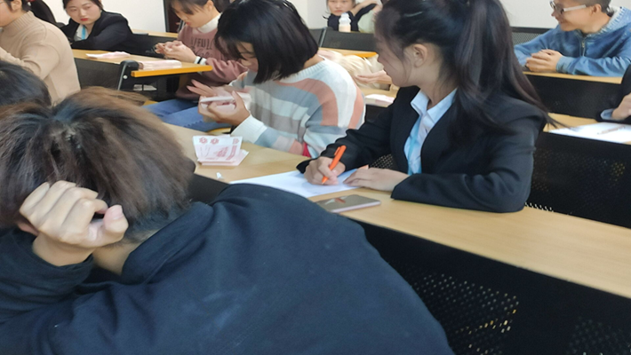 点钞,是会计人员必备的一项技能,为培养同学积极向上的进取精神,提高同学的学习热情,为对会计有兴趣的同学提供一个体验点钞技能的机会。下午7时,该系在一教楼C101教室举办了“钞”越自我点钞大赛,并邀请了我系财经教研室主任进行指导及点评。