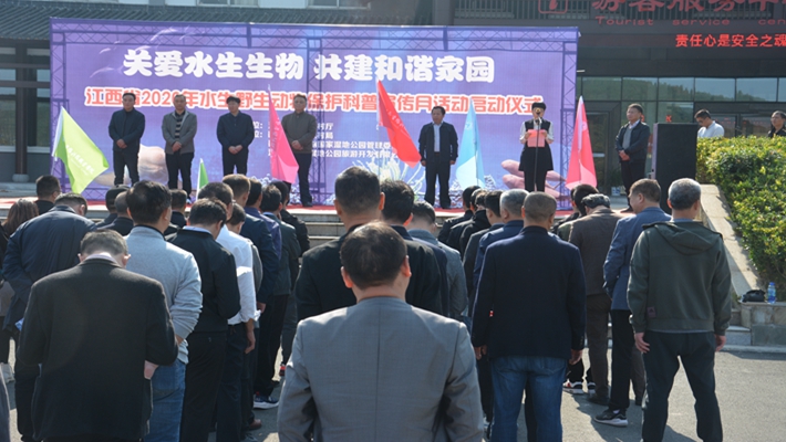 启动仪式上,江西省农村农业厅一级巡视员龙宇闻强调了退捕禁捕的重要性和实施退捕禁捕的显著成效,并宣布江西省2020年水生野生动物保护科普宣传月正式启动。