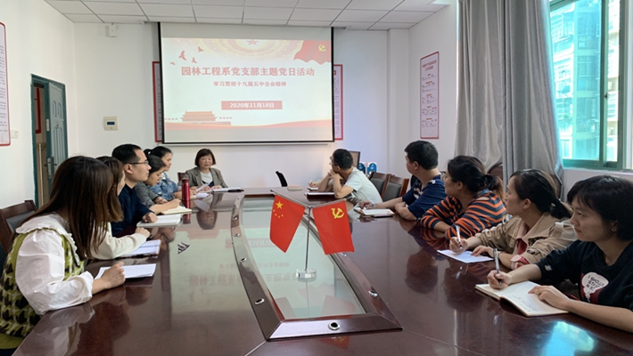 10月29日,中国共产党第十九届中央委员会第五次全体会议在京顺利闭幕。为认真学习贯彻党的十九届五中全会精神,11月18日,园林工程系党支部组织开展“学习贯彻党的十九届五中全会精神”主题党日活动。