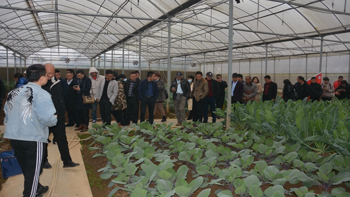第二天,天色初亮。培训处老师和学员继续坐车前往武阳镇的江西大家族种业有限公司。虽然行程较远、路途也颠簸,但在培训处带队老师的组织下,学员们利用乘车富余时间对学习和考察的体会纷纷做了交流,也有学员介绍了自己生产营销方面的好的思路,到达考察地点后学员们仍然个个精神饱满。江西大家族种业有限公司的负责人引领学员们参观了大棚辣椒、蔬菜的种植基地。该公司是一家产研结合的民办企业,江西省农科院及地市蔬菜所均跟其有技术合作,大棚内培育品种繁多,培训学员无一不细致的询问相关的种植经验,考察结束后有些学员便主动添加基地负责人的联系方式,以便后续做进一步的沟通。