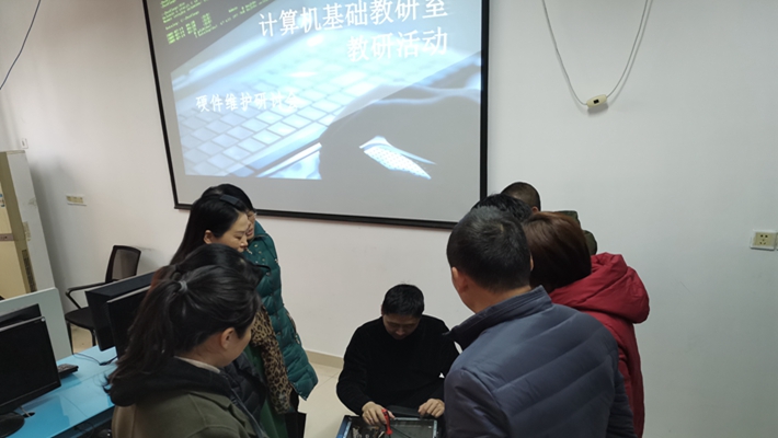 为提高机房实验员计算机维护业务整体水平,以便更好地服务于教学,进一步提高相关课程实践性教学环节的质量。12月9日下午,信息工程系计算机基础教研室召集本教研室全体教师和实验员在实验楼四楼机房开展了“硬件维护”教研活动。