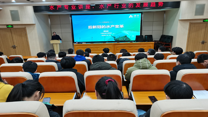 12月16日下午,江西澳华农牧科技有限公司总经理在实验楼学术报告厅为水产养殖技术专业师生近120人呈上了一场主题为《水产行业的发展趋势》的专业讲座。