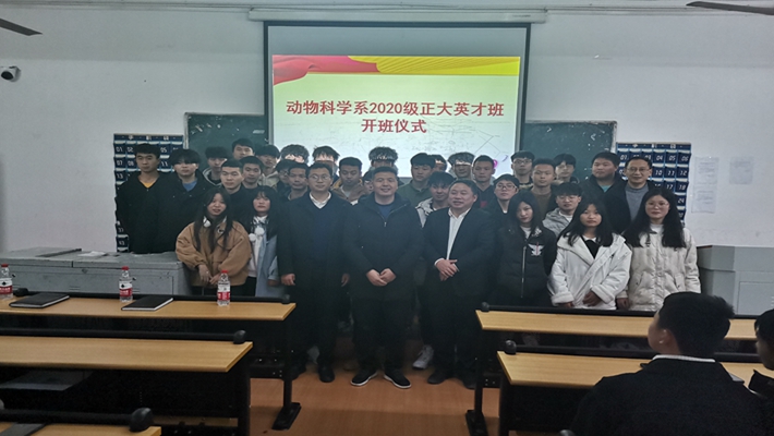 12月20日下午,动物科学系“正大英才班”开班仪式在博学楼三楼300教室隆重举行。正大集团江西区总裁、动物科学系党支部副书记、正大集团人力资源总监、技术指导等出席仪式,“正大英才班”全体学生参加了仪式。