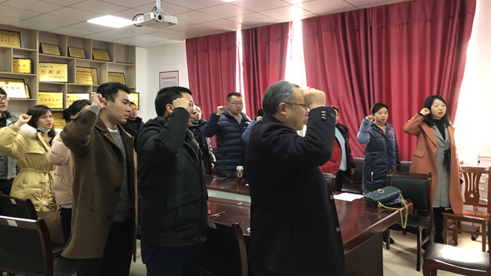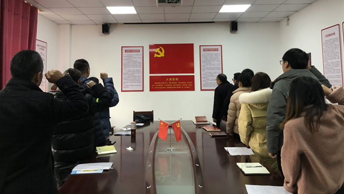 会上,支部书记带领全体党员重温入党誓词。在庄严的气氛中全体党员举起右手,面对党旗,大家以铿锵有力的铮铮誓词庄严宣誓,在洪亮的宣读声中,让全体党员进一步坚定理想信念,不忘初心、牢记使命,永葆党员先进本色。