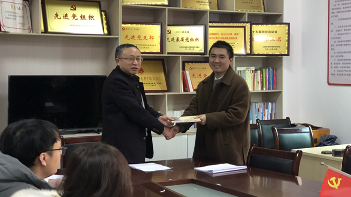 活动首先是支部书记为12月份过政治生日的傅政老师和肖莹老师送上精致的党员政治生日贺卡,希望他们时刻牢记党的宗旨和使命,切实增强党员的使命感、责任感,时刻发挥党员的先锋模范作用,为学院的发展贡献自己的力量。两位老师感言道:“每名党员都有两个生日,一个是自然生日,一个是政治生日,作为一名共产党员,我们将时刻不忘初心,牢记使命在工作和生活中时刻以党员的标准,严格要求自己,立足本职岗位,当标杆、作贡献。”