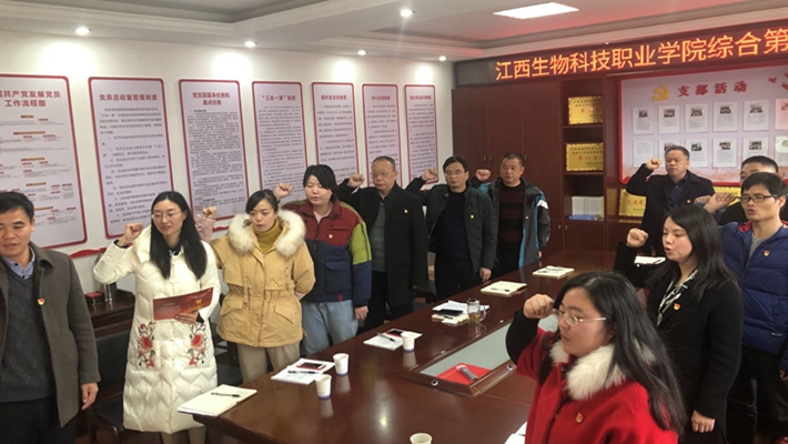 会议为两位支部党员欢庆政治生日,通过赠送政治生日贺卡、发表政治生日感言、宣读政治生日寄语等形式,为支部党员送上了党组织的关爱和温暖。全体与会党员面对党旗重温了入党誓词,全体党员佩戴党徽、举起右手,紧握拳头,庄严宣誓,牢记初心使命。