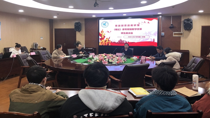 座谈会上,思政部负责人首先传达了中共中央宣传部、教育部新近联合印发的《新时代学校思想政治理论课改革创新实施方案》,开宗明义强调了思政课教学改革创新的必要性及重要意义。随后,思政教研室主任对本学期《概论》课程教学改革工作的思路、实施过程、创新点、成效等方面进行了详细汇报,同时就前期所做的“教学改革成效问卷调查”结果进行了分析和解读。