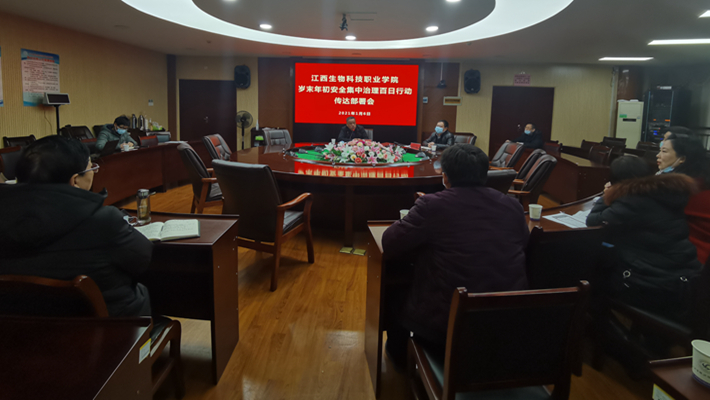 1月6日上午,在全省学校安全稳定工作推进视频会结束后,学院紧接着召开岁末年初安全集中治理百日行动传达部署会。院党委书记、院长曹端荣,院党委委员、副校长王义林,疫情防控办公室、保卫处、学工处、总务处、教务处、团委、宣传处主要负责同志及各系(部)书记、学管干事参加了本次会议。