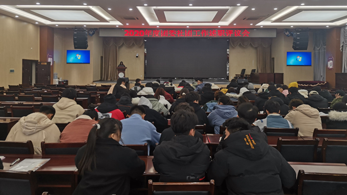 2021年1月5日中午,万象城官网团委在行政楼二楼会议室召开2020年度社团工作述职会。团委老师、各社团负责人参加了会议。