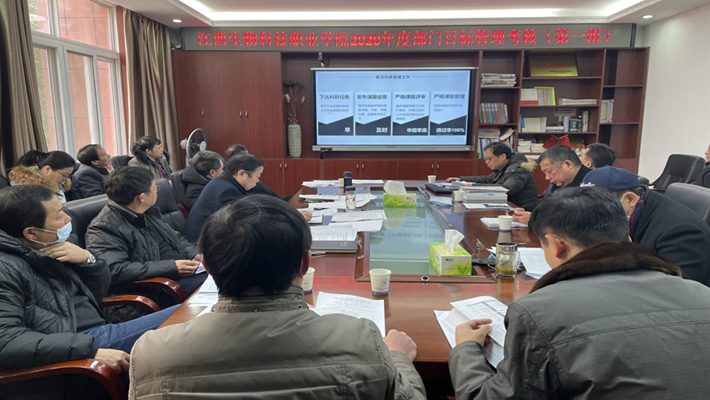 1月11日,学院2020年度目标管理考核第一组在知行楼三楼党委会议室对宣传处、教务处、科研处、招生办、就业办、基建办、工会7个部门进行了现场考核。院领导谭酬志、杨春、詹绍成出席本组的考核工作,院纪检(监察室)、总务处、生物工程系主要负责同志参加了评审工作。