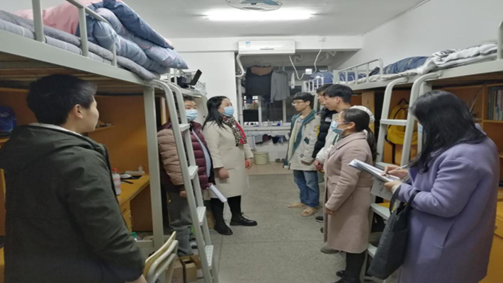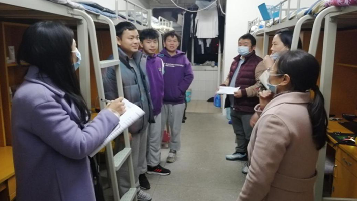 当天晚上7点,由该系党支部负责人带领全系在校生辅导员下到学生寝室,每到一间寝室,该系党支部负责人就会询问学生有没有购买到回家的车票及离校的具体时间等信息,并叮嘱学生回家路上一定要注意安全,疫情期间要做好个人防护,戴好学院发的口罩和手套。离校时一定要记得断水断电、把门窗关好。