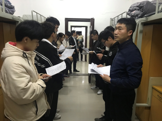 本次检查的主要内容包括寝室安全、寝室卫生管理、日常行为规范等三个方面。经检查,发现宿舍整体情况较好,但个别宿舍存在一定问题,主要表现在:地面不洁、物品摆放不齐等,老师们在检查中逐一进行了指导并提出解决办法,并指出寝室长、及寝室成员各司其责,自觉保持良好的内务卫生。