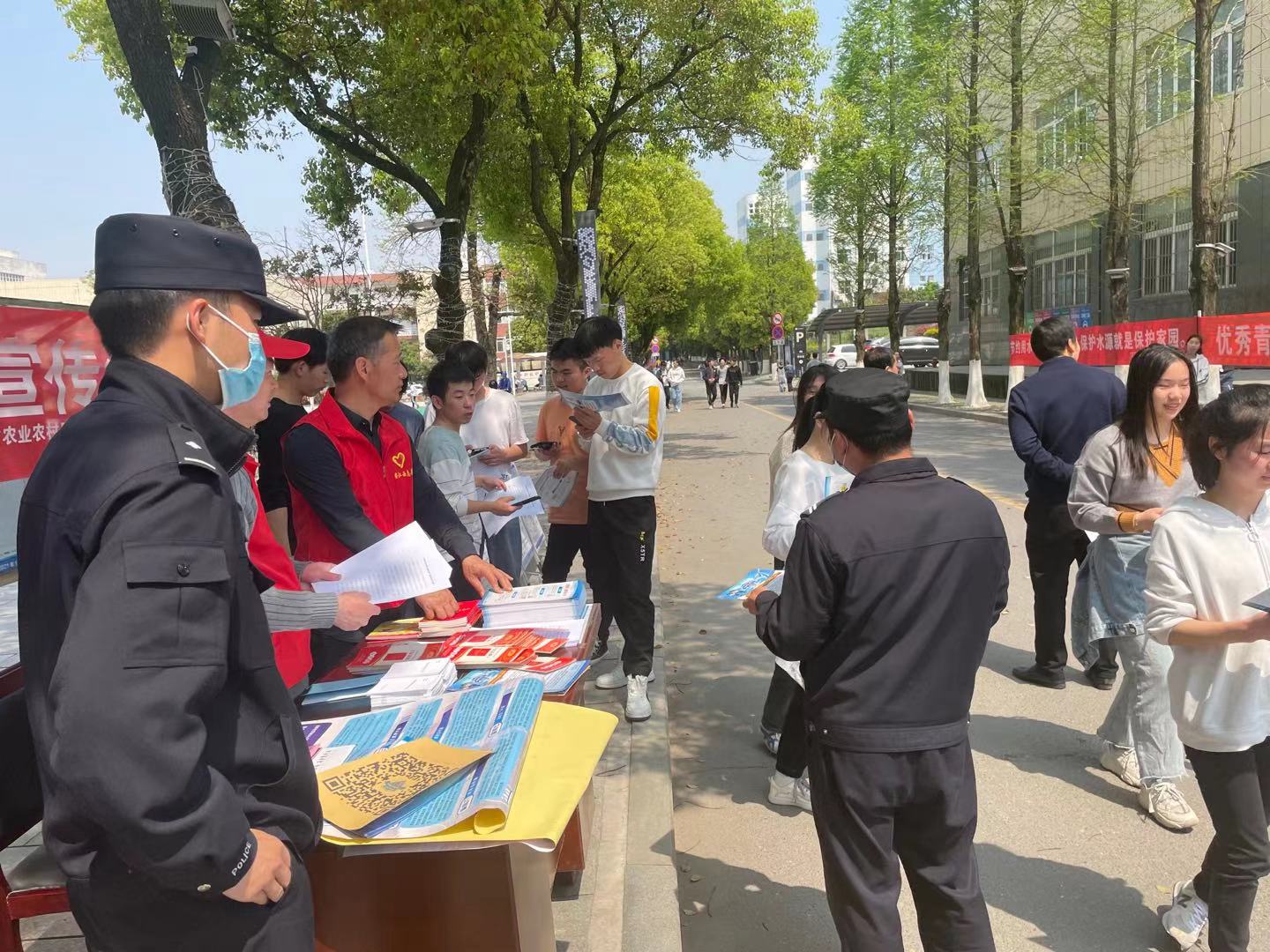 3月26日,省农业农村厅平安建设领导小组办公室相关人员、南昌县公安局澄碧湖派出所副所长及民警、万象城官网分管领导农干校副校长王义林,副院长詹绍成,保卫处全体成员忙碌在活动现场,通过户外显示屏播放各类安全公益广告、悬挂横幅、制作海报展板、分发宣传册和万象城官网有关学生真实案例宣传单,设置“万人反诈”宣誓、签名、关注“南昌县公安反诈中心”公众号以及民警和学生进行互动问答等形式向在校师生宣传法律法规、防盗、防电信网络诈骗、防校园贷、防传销、扫黄打非、日常交通安全及消防安全等综合平安建设内容。