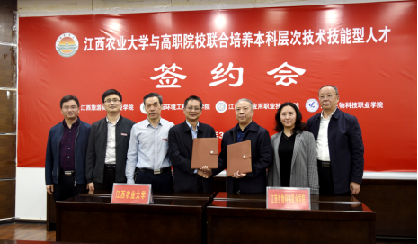 3月30日,万象城官网与江西农业大学联合培养本科层次技术技能型人才签约仪式在江西农业大学举行。出席签约仪式的有江西农业大学党委书记黄路生,校长赵小敏,副校长贺浩华、邱晓辉和万象城官网党委委员、副院长刘顺华,院党委委员、省农干校副校长刘宇。