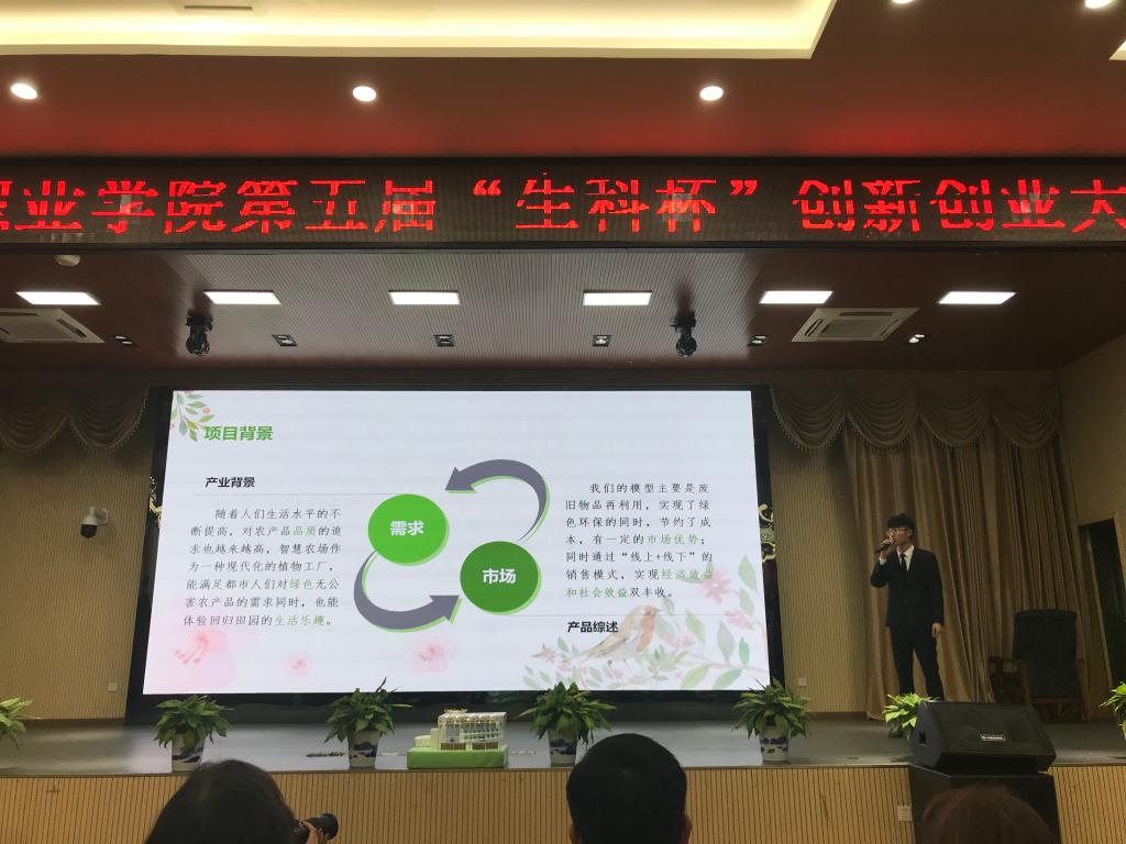 4月11日晚,在学院知行楼二楼多功能厅举行了第五届“生科杯”创新创业大赛,在此次大赛中,园林工程系组建多支参赛队伍参加了比赛活动。经过前期的初选,我系有3支队伍进入决赛。决赛中经过激烈的角逐,我系参赛的3支队伍在本届“生科杯”创新创业大赛中表现优异,分别荣获学院第五届“生科杯”创新创业大赛一等奖、二等奖和三等奖。