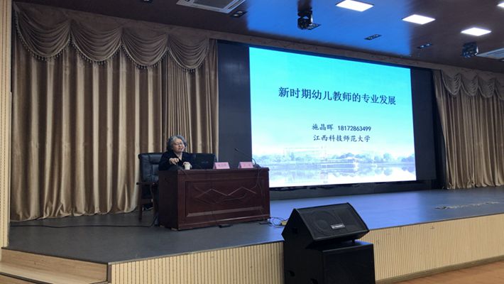 讲座上,施晶晖教授提出幼儿教师这个职业的重要性,从教师的专业发展、学前教育面临的形势与主要问题、幼儿教师的专业发展标准、促进幼儿教师专业发展的途径等四个方面阐述了新时期幼儿教师的专业发展方向,并希望大家树立幼儿为本、师德为先、能力为重、终身学习基本理念,热爱幼儿、尊重幼儿、了解幼儿、科学育儿。