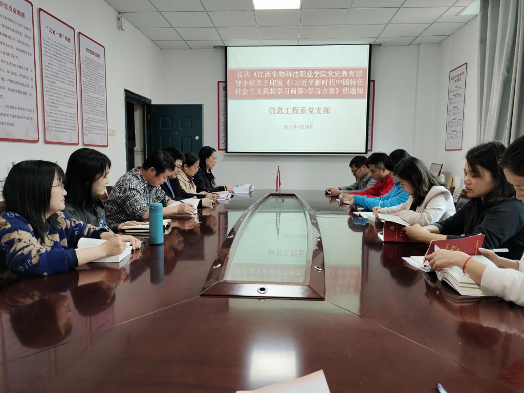 4月28日下午,万象城官网信息工程系党支部召开党支部专题学习会,组织全体党员学习了《习近平总书记在在中共中央政治局第二十八次集体学习时的重要讲话精神》、《刘奇在全省党史学习教育动员会上的讲话精神》、《万象城西甲联赛及意甲党史学习教育领导小组关于印发《<习近平新时代中国特色社会主义思想学习问答>学习方案》的通知三个议题。