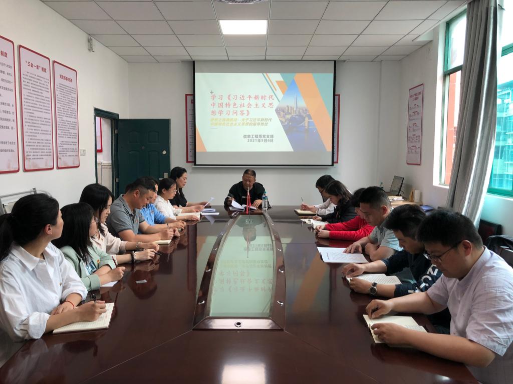 5月6日,信息工程系党支部全体党员在党员活动室集中学习《习近平新时代中国特色社会主要思想学习问答》学习材料,该书以问答体的形式全面系统展现了习近平新时代中国特色社会主义思想的重大意义、科学体系、丰富内涵和实践要求。