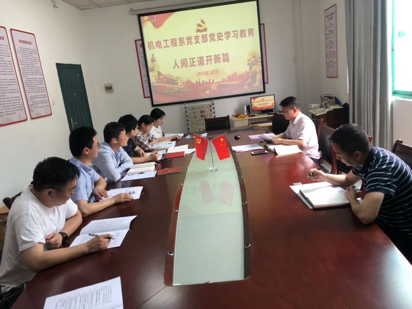5月7日,机电工程系党支部组织全体党员在明德楼三楼党员活动室开展党史教育集中学习,会议由支部宣传委员主持。