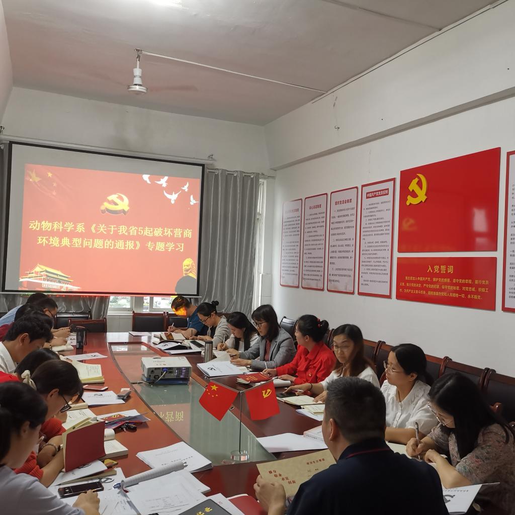动物科学系党支部组织学习《关于我省5起破坏营商环境典型问题的通报》
