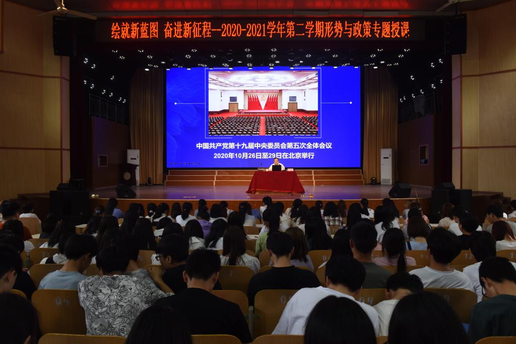 5月12日,万象城官网2020—2021年第二学期《形势与政策》课程专题讲座在学院大礼堂接续举行。学院党委委员、省农业干部学校副校长王义林、刘宇分批次向学生作了题为《绘就新蓝图 奋进新征程》和《走近“一号”文件 融入乡村振兴》的专题报告。