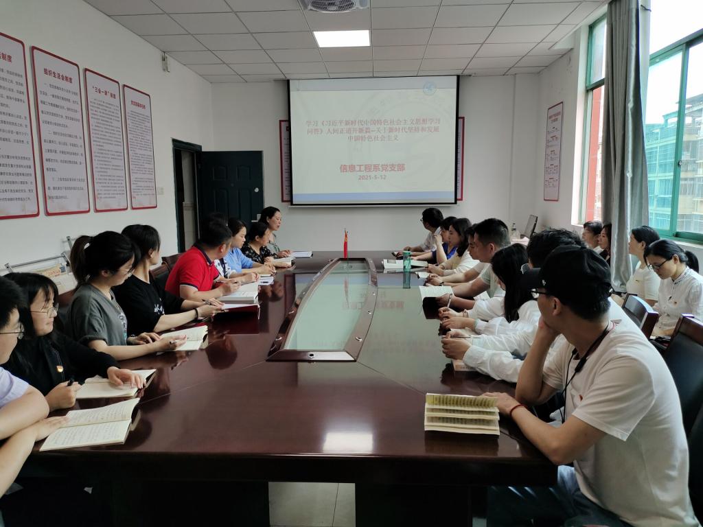 5月12日,信息工程系党支部组织全体党员开展党史教育集中学习活动。活动中,全体党员干部集中学习研讨了《习近平新时代中国特色社会主义思想问答》第二章,为什么说中国特色社会主义是历史的选择、人民的选择?为什么说中国特色社会主义是社会主义,不是别的什么主义。