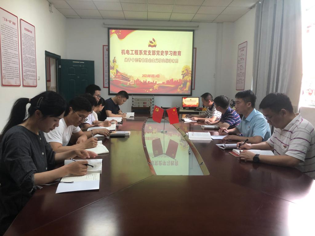 5月14日下午,机电工程系党支部组织全体党员在明德楼三楼党员活动室开展党史教育集中学习,会议由支部副书记主持。