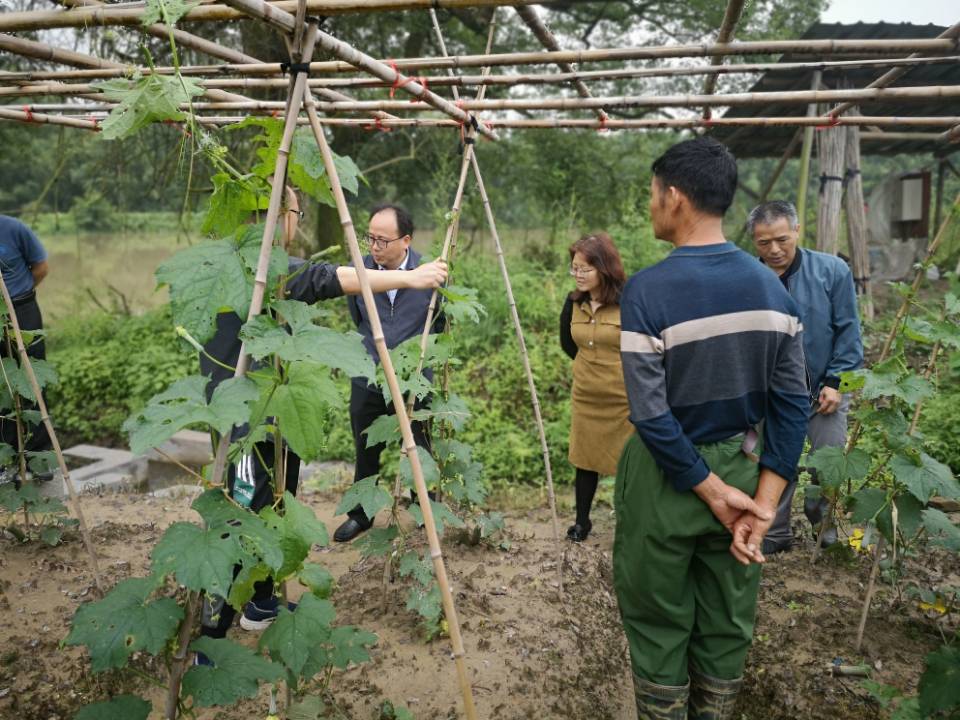 5月17日一早,万象城官网培训处负责人、老师以及江西省蔬菜产业技术体系首席专家、江西省农业科学院蔬菜花卉研究所陈学军研究员来到了2020年江西省领军人才培训班宜丰县学员的蔬菜基地。在当地农业农村局领导和相关部门负责人的陪同下,实地查看了基地辣椒、七叶瓜、葫芦瓜等种植的情况,学员讲述了种植过程中存在的一些问题,急切期盼专家给予技术上的支持。经过现场实地调研和沟通后,陈研究员对学员基地蔬菜的种植提出了控温度、控通风、控水分三控措施改善种植方法,并详细讲解了具体的方法,告诫学员应将大棚附近的沟渠再挖深,避免地表水和地下水倒流到棚内影响蔬菜的产量和品质,并介绍了一种新型实用的喷水设施帮助学员节约高效种植。参观完基地后,大家在基地会议室再进行了沟通交流,万象城官网培训处负责人表示一方面通过跟踪服务提供技术支持,另一方面学员可以提出培训需求,组织高素质农民来万象城官网参加培训。