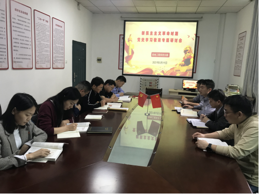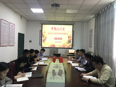 5月19日下午,机电工程系党支部组织全体党员在明德楼三楼党员活动室专题学习了“新民主主义革命时期”党史,并开展交流研讨。