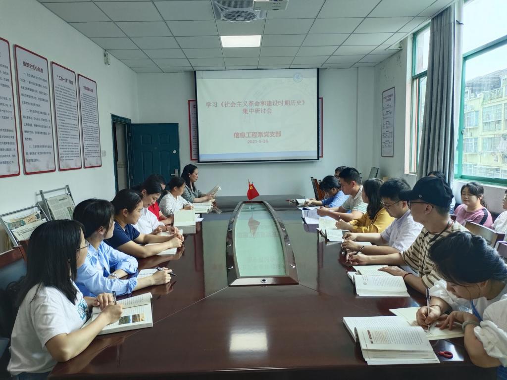 5月26日,信息工程系党支部开展了社会主义革命和建设历史时期专题党史学习研讨会,会议由系党支部书记主持,系党支部全体党员干部共20余人参加了此次研讨会。