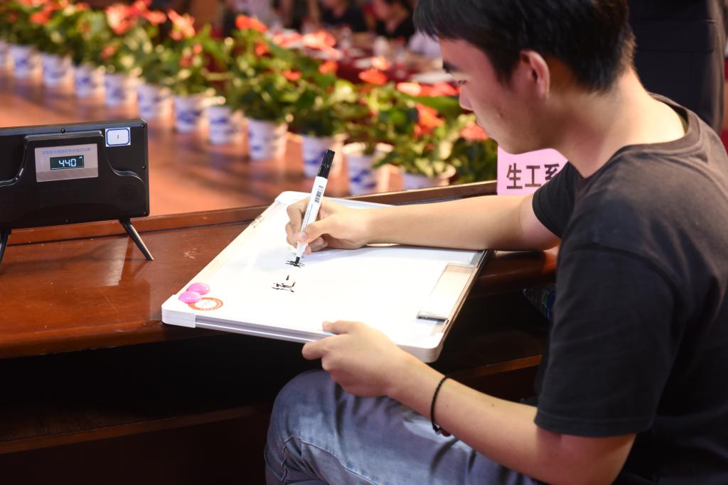 本次比赛共分两个阶段,5月至6月初,线上阶段覆盖学院六系一部师生,以后台自动计分为主,评选出前30名进行奖励,并且经过初赛——线上答题的激烈角逐,学院六系一部分别产生了一支由两名老师和四名学生共六人组成的参赛队伍,他们即将在决赛舞台进行最终的比拼。线下决赛于6月3日晚7点在大礼堂举行,现场进行抢答赛和竞答赛的环节比拼,最后决出奖项。“抢答,开始……” 随着主持人的话音刚落,抢答赛就呈现出焦灼的状态,每个队伍都摩拳擦掌、跃跃欲试,“恭喜,加10分”“很遗憾,犯规,扣10分”在比赛规则的引导之下,第一环节顺利进行,台下观众的呼喊声也随着选手的答题状态此起彼伏,仿佛这成了一场全员参与的大决战。第二环节的竞答赛是一边答题一边淘汰选手,更能体现场上选手的能力和水平,不出半小时,场上就剩下生工系和动科系仍坚守到擂台上,每位选手都拿出一决雌雄的勇气和决心,对每一题都认真把握、积极争取,通过加赛环节的比拼,最终,由生工系摘得桂冠,动科系屈居第二。本着“友谊第一 比赛第二”的精神,冠亚军握手言和、共同进步。
