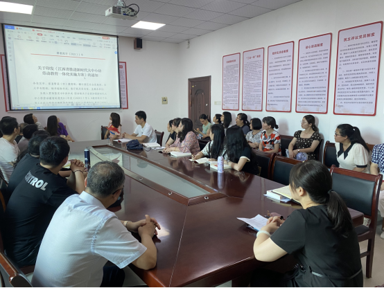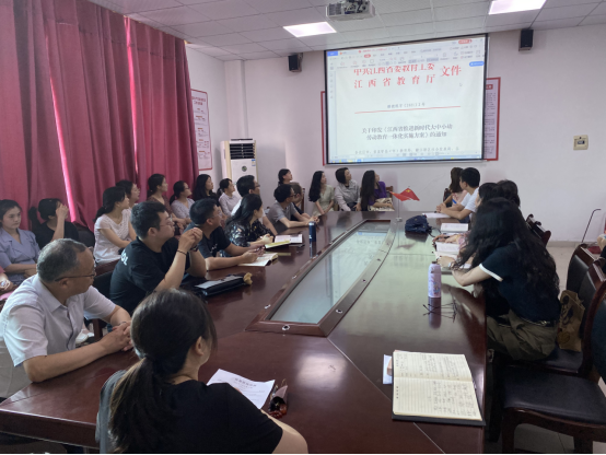 会上,经贸系负责人组织领学了教育厅关于印发《江西省推进新时代大中下幼劳动教育一体化实施方案》的通知、关于转发《教育部办公厅关于学习宣传贯彻实施新修订的教育法的通知》等系列文件,并要求各教研室会后结合日常教育教学实践进行小组讨论。