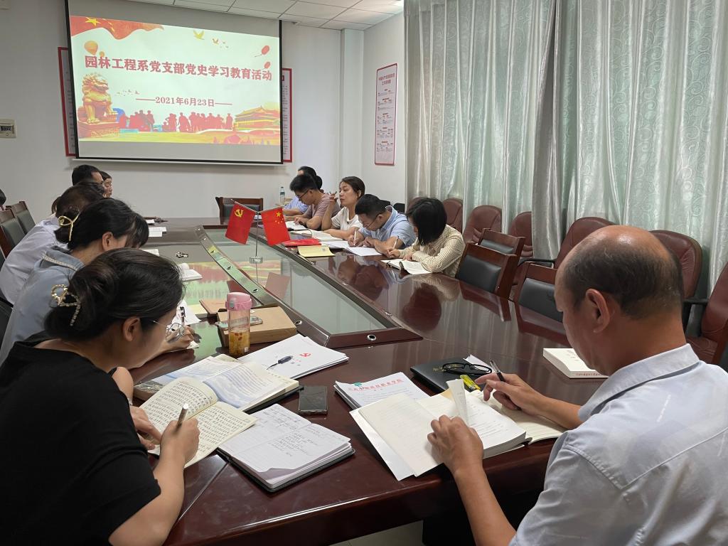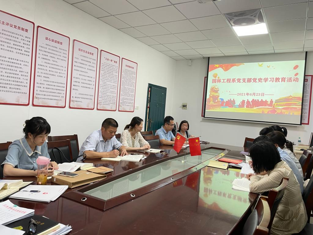 为切实做好党史学习教育工作,提高党史学习的实效性,园林工程系党支部于6月23日下午,在党员活动室认真开展党史学习教育,由支部书记主持,支部全体党员参加。