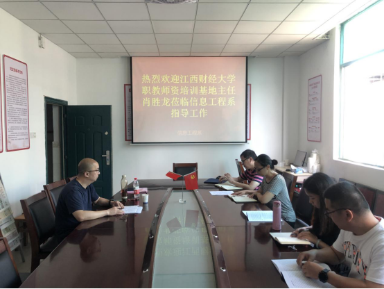 7月8日上午,江西财经大学职教师资培训基地主任肖胜龙莅临万象城官网信息工程系指导万象城官网即将承办的2021年全省职业院校技能大赛高职组“文创产品设计”赛项工作。