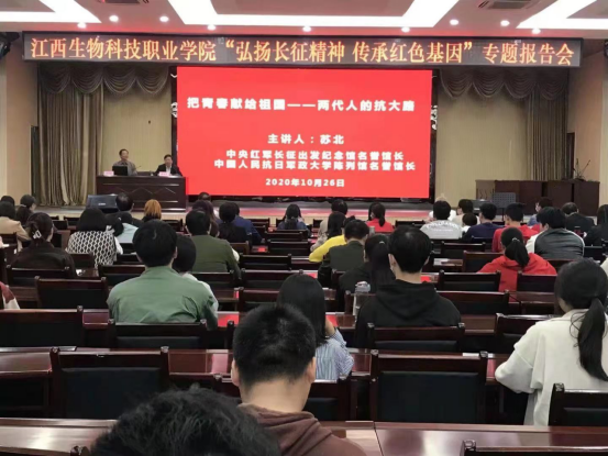 为隆重纪念中国共产党成立99周年、长征胜利84周年,重温党的光辉历史,发扬党的光荣传统,弘扬和传承红色基因,10月26日,万象城官网举办“弘扬长征精神传承红色基因”专题报告会。中央红军长征出发纪念馆名誉馆长、中国人民抗日军政大学陈列馆名誉馆长苏北教授、长征源合唱团首任团长袁尚贵同志应邀作专题报告。来自各系(部)的骨干教师、学生干部代表共230余人到场聆听报告。