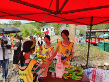 正值当地一年一度“青蛙节”举办之际。生物工程系组织学生参与青蛙节志愿服务活动。烈日炎炎,师生不畏酷暑,井然有序做好青蛙节的各项准备工作,包括扮青蛙人偶,向游客分发小礼品,组织娱乐活动等。活动期间,恰逢中央电视台三农群英会栏目组在当地进行采访拍摄,对师生进行了采访,给予高度认可与评价。