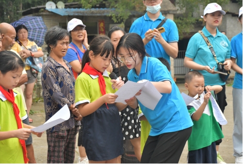 今年是建党一百周年,为了突出这个主题,由理论宣传团小组的成员教小朋友们一起合唱红歌《名字叫中国》,与小朋友们拉进距离后,共同聆听文艺作品中的“党史精神”。随后,团队指导老师为现场的村民们带来了一首《映山红》,在老师优美的歌声中,村民们和小朋友都纷纷哼唱起来。优美的旋律像红色的种子慢慢植入到了小朋友们和村民们心中,同时激发了他们对红色历史的学习兴趣。红歌不仅歌词美,而且是一段历史,它脍炙人口,便于记忆,可以使小朋友们受到红色教育。