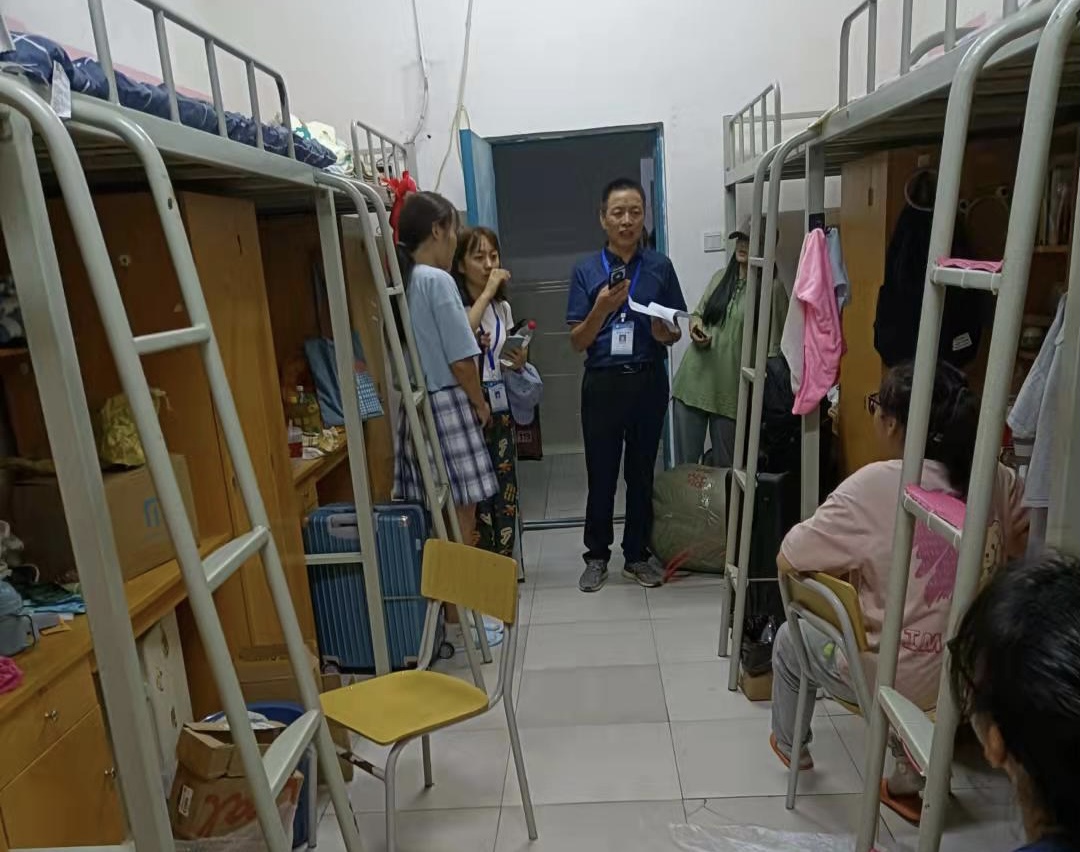 校园内,各个岗位人员各司其职、尽心值守。只要有新同学进校门,就有身穿金黄色上衣的志愿者热心的帮忙搬运行李,引领他们前往办理入学手续。“同学,我来帮你提行李吧”,在报到现场,新生辅导员细心地一遍一遍的为新生指引报到手续办理,对于新生提出的学习、生活中的各类问题,老师们耐心地一一解答。晚上,动物科学系主任带领新生辅导员们一同下寝,对新生进行了慰问和嘱咐,一个个暖心的瞬间,让来自五湖四海的新生们感受到了“家的温暖”。