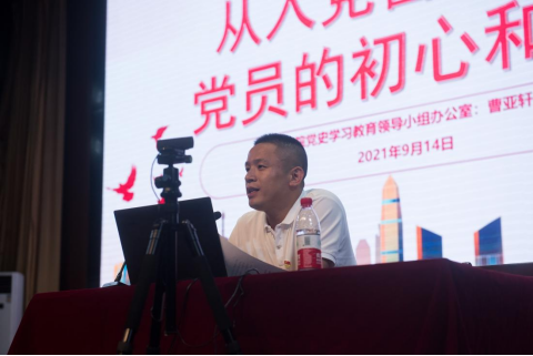 曹亚轩从党史发展脉络及学习意义、一大至十九大党的光辉历程、党史学习心得等方面讲述了中国共产党从1921年成立以来走过的100年艰辛而辉煌的风雨历程及取得的辉煌成就,勉励未来三年在大学生活的新生要胸怀强国之志,锤炼报国之才,以梦为马,不负韶华,在全面建设社会主义现代化新征程中绘就属于自己的青春。