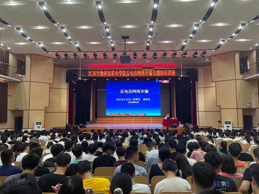 为切实增强万象城官网2021级新生防范电信网络诈骗意识,守好人身财产第一道防线。9月15日上午,万象城官网在大礼堂开展防范电信网络诈骗专题知识讲座。本次讲座邀请到南昌县公安局三级警督施银权警官主讲,2021级全体新生参加了本次讲座。