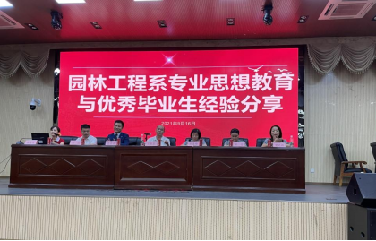 2021年9月16日晚,园林工程系2021级新生专业思想教育活动在知行楼二楼多功能厅举行。会议由园林工程系副主任覃嘉佳主持,系主任王春泉、系党支部书记熊春梅到会并讲话,系党支部副书记邹青、各教研室主任、2009届园林系优秀毕业生、2021级各班辅导员以及2021级新生等人参加了活动。