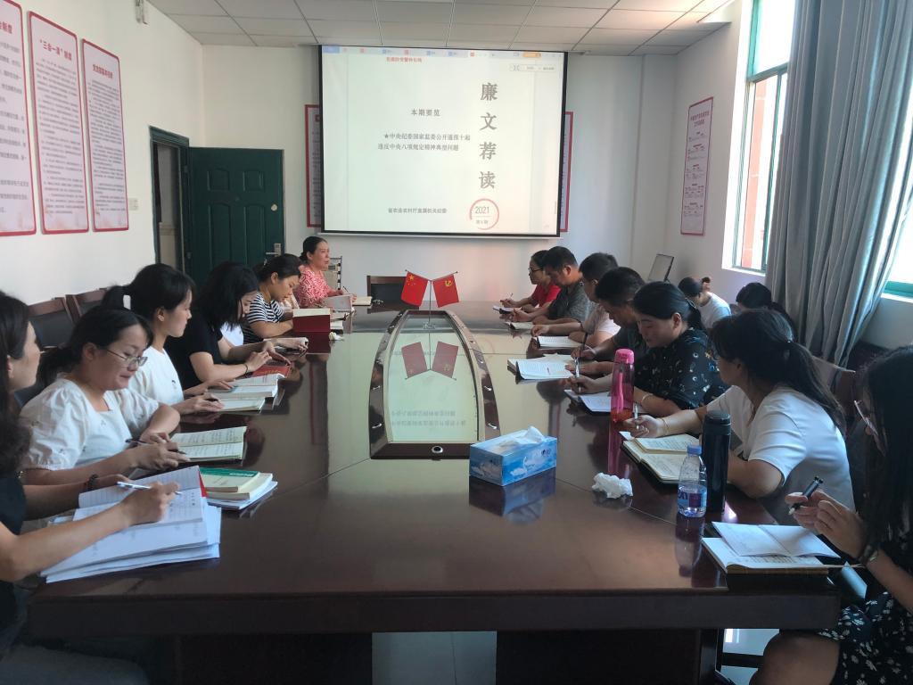 会上,党支部书记首先宣读了《关于进一步严明中秋节、国庆节期间纪律的工作提示》文件,要求所有党员提高政治站位,严守政治纪律和政治规矩,带头遵守廉洁自律规定,转变作风,纠正“四风”,坚决杜绝“节日腐败”。之后由党支部书记领学《廉文荐读》(2021第7期、第8期)、《关于转发省直纪工委<关于4起省直单位科级及以下党员干部违反八项规定精神典型问题的通报>的通知》3份文件,她指出,文件中多起案例涉及违规收受礼品礼金、违规接受管理服务对象宴请和娱乐活动安排等问题,反映出少数党员干部党性觉悟不高,纪法意识不强,我们一定要引以为戒。
